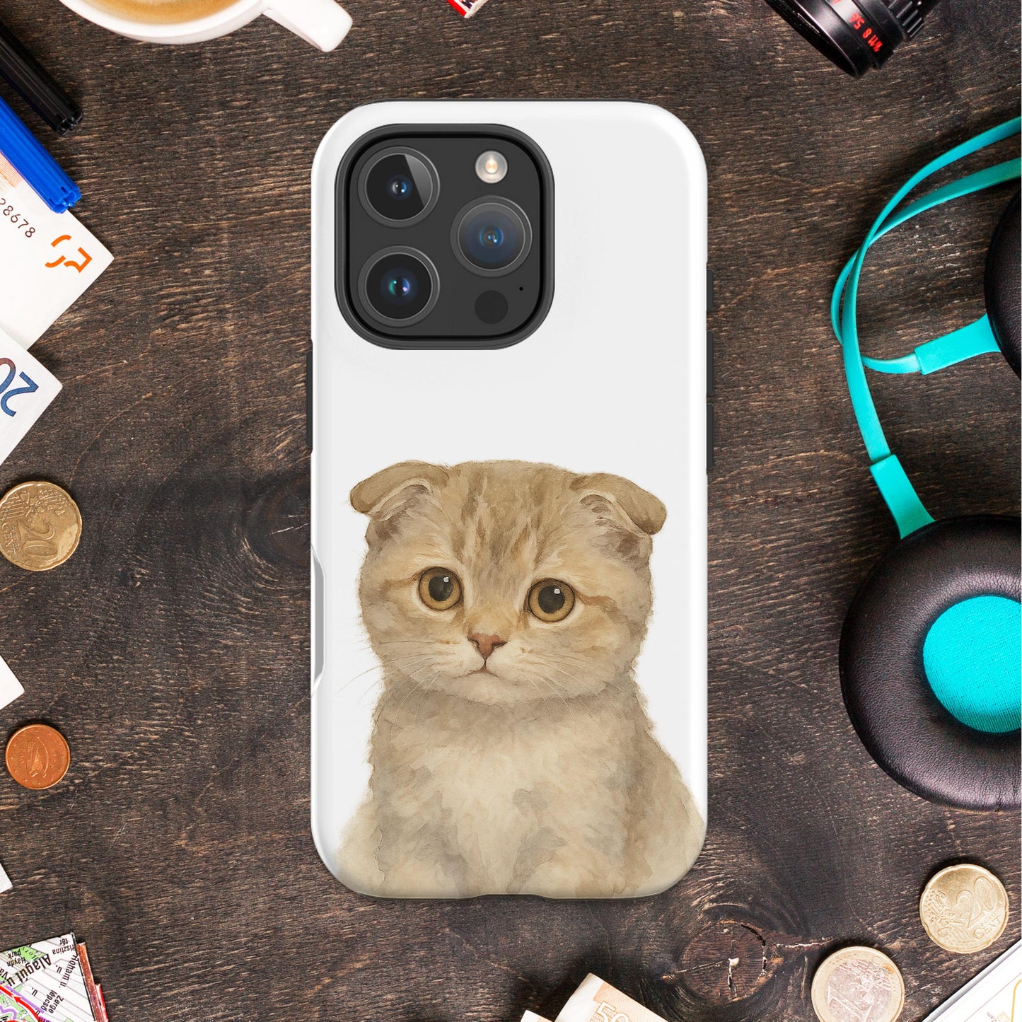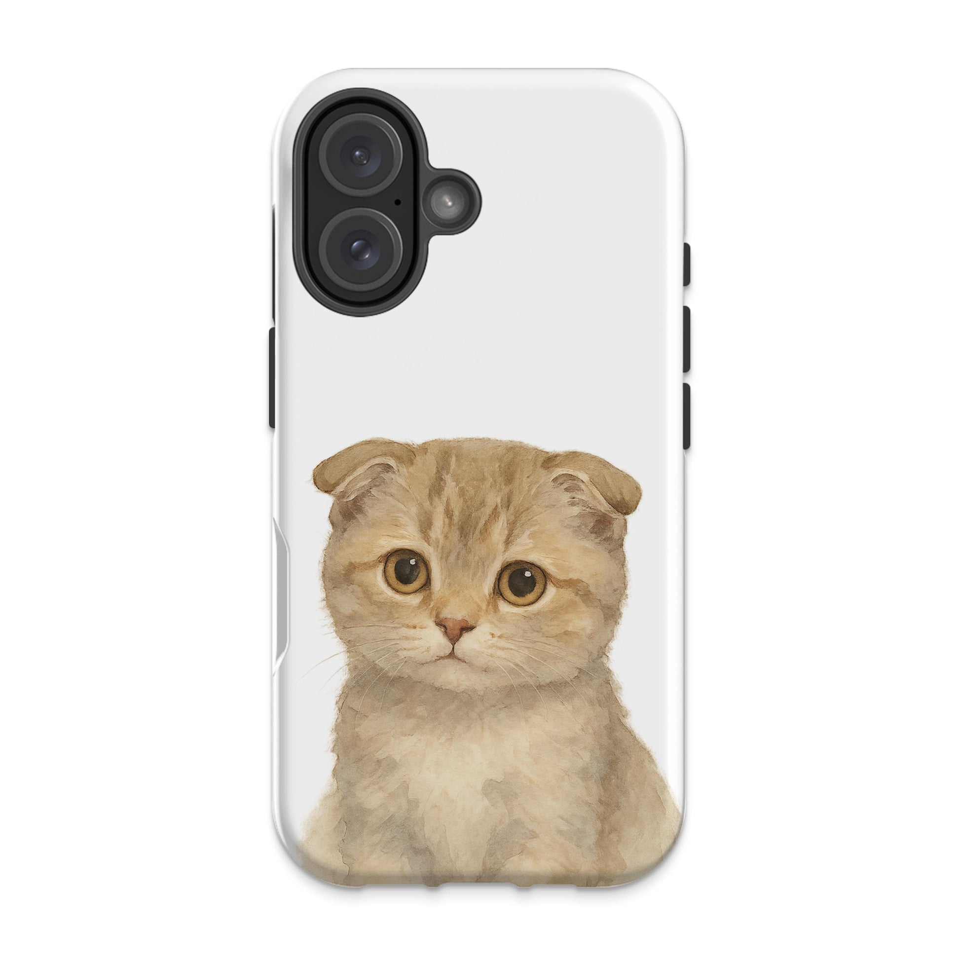 Protect your IPhone 16 with this adorable phone case featuring a charming watercolor illustration of a Scottish Fold kitten. This design captures the sweet and innocent nature of this beloved cat breed, making it a perfect accessory for cat lovers of all ages.